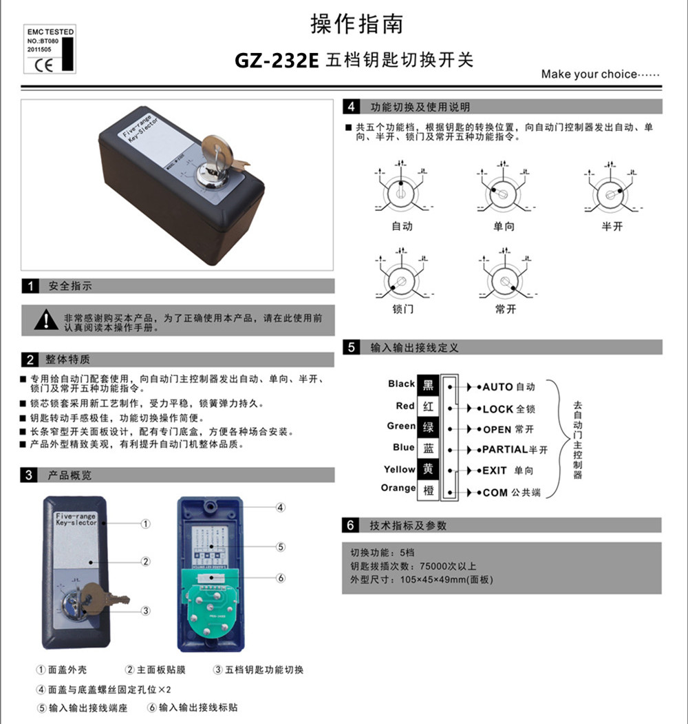 五档切换开关窄型GZ-232E